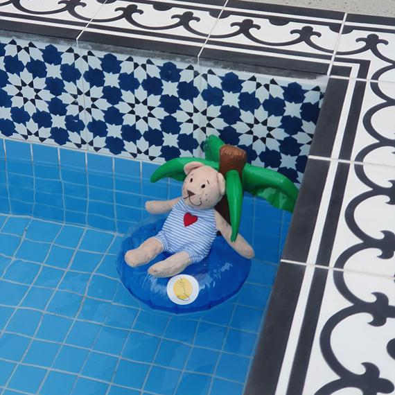 수영장 타일 패턴과 라탄, 야자수까지 완벽..!