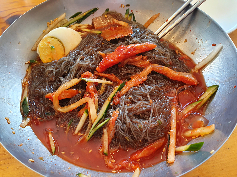 아주 특별한 맛은 아니었지만, 냉면 먹을 때 빠지면 섭섭하니, 뗄레야 뗄 수 없는 조합입니다.