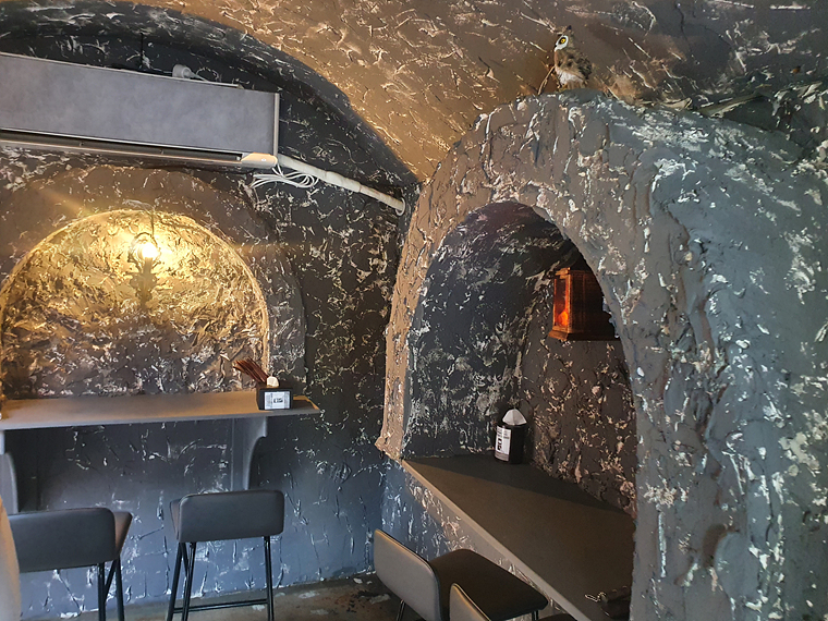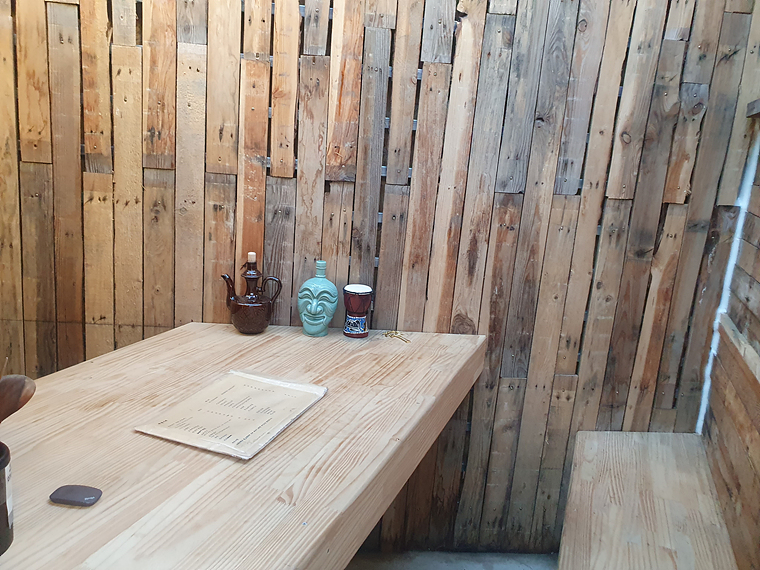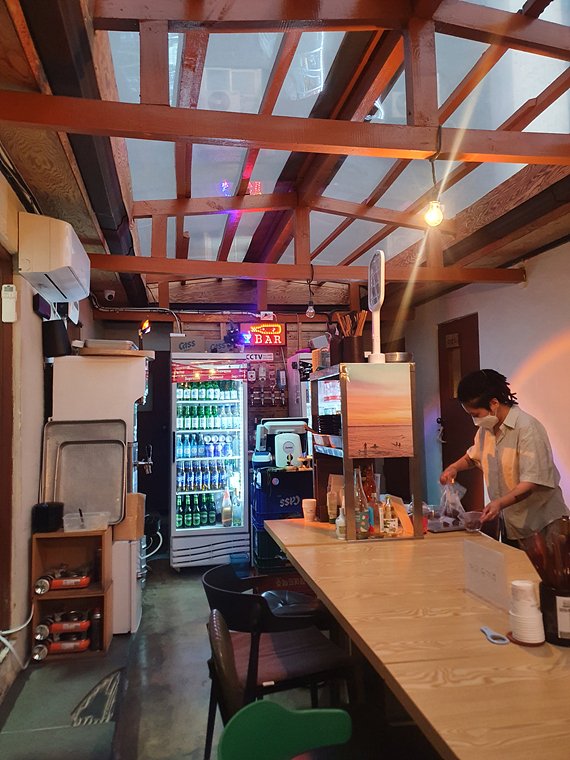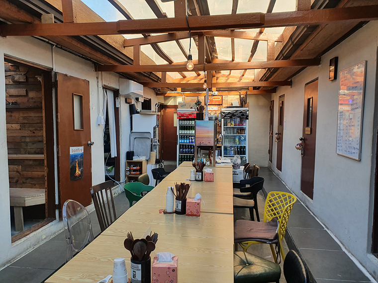 속초 아프리카는 실내 구조가 좀 특이한데요, 오래된 민박집을 개조해서 만들었다고 하네요. 그래서 마당? 을 기준으로 양옆에 객실 형태로 좌석이 마련되어 있어요.