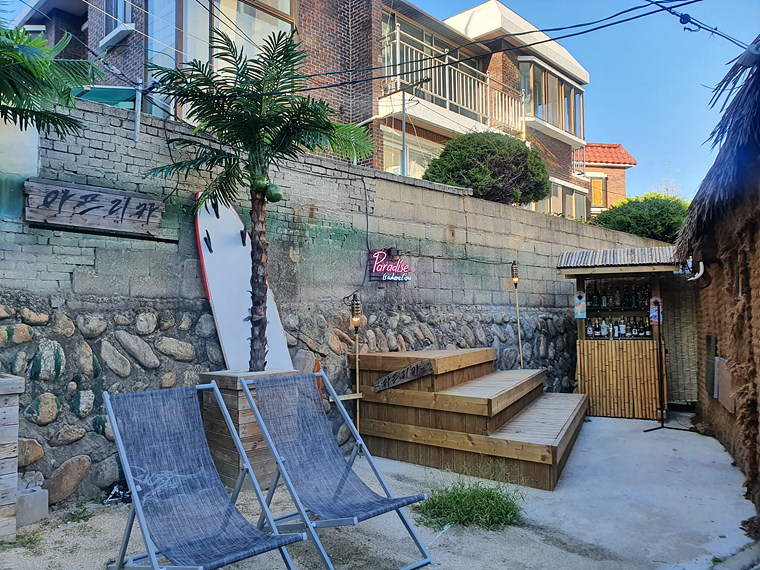 자메이카 풍의 방과, 미처 사진에 담지 못했지만 책을 읽으며 혼술을 할 수 있는 방도 있었어요.