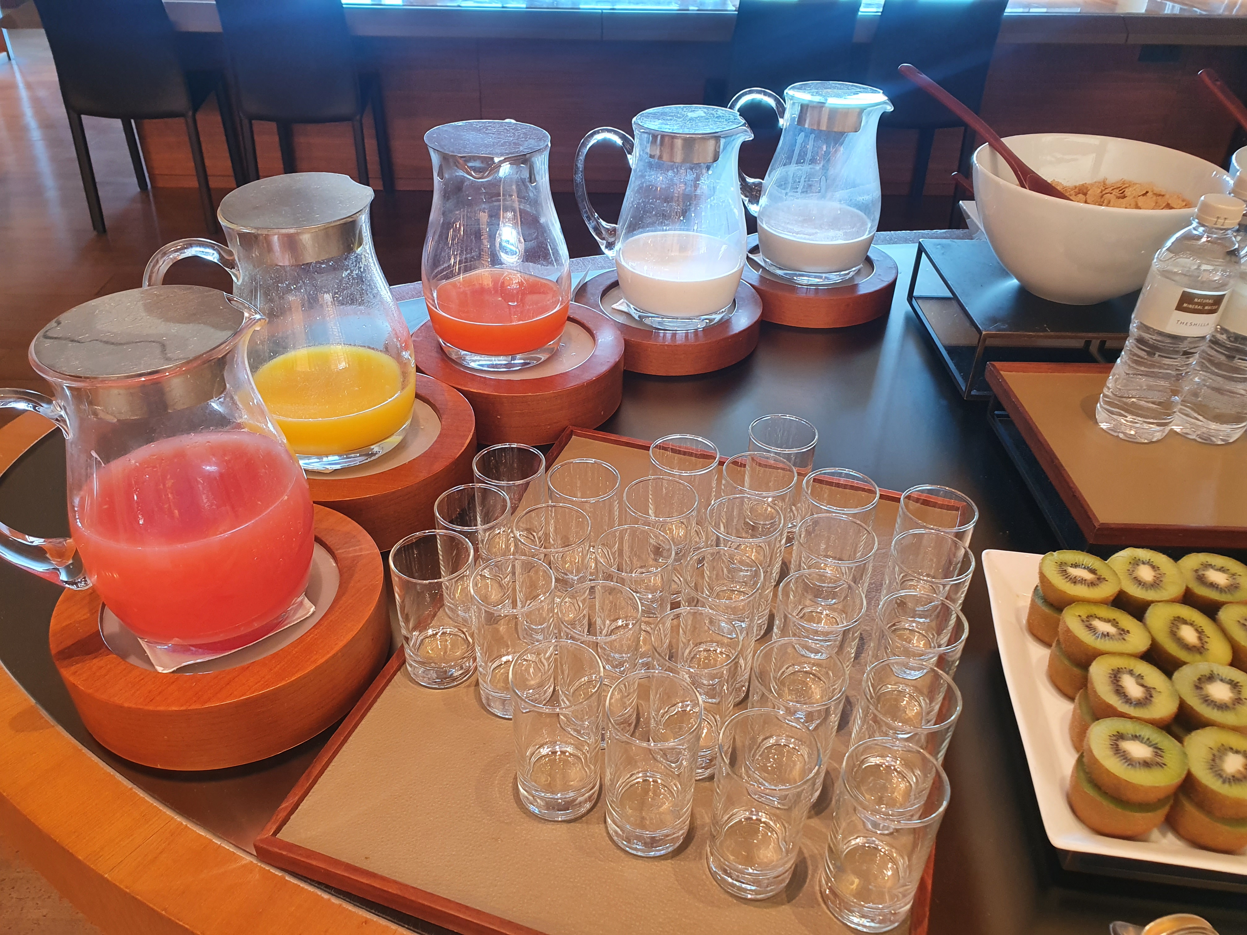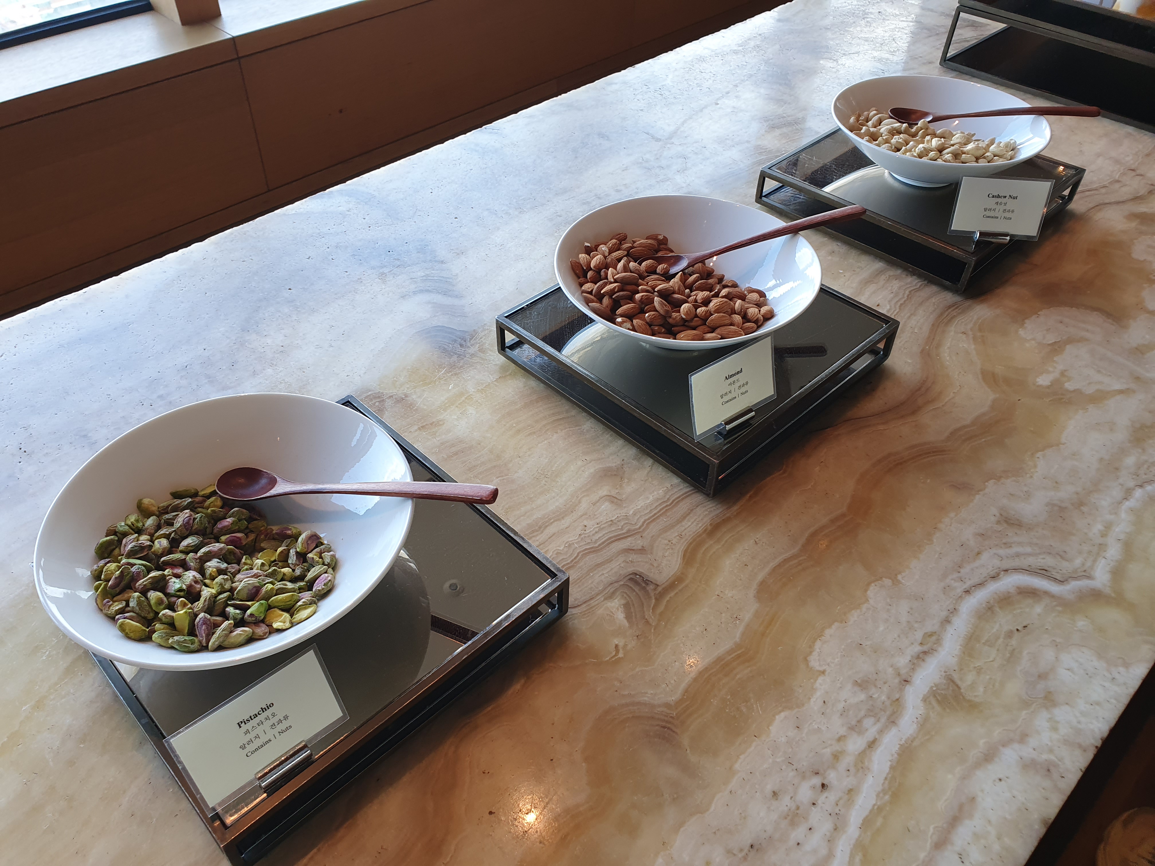 견과류, 과일, 쥬스 등 간단한 간식거리가 뷔페식으로 제공되고