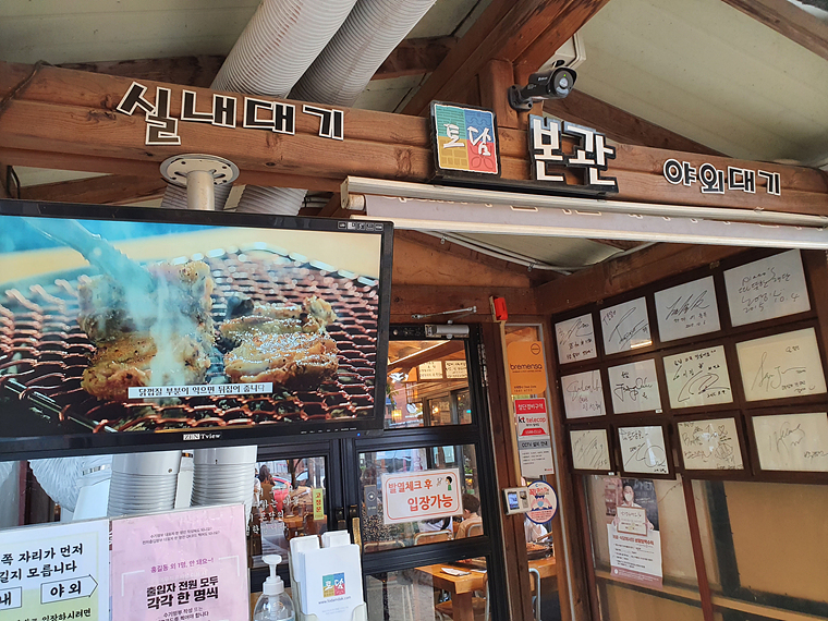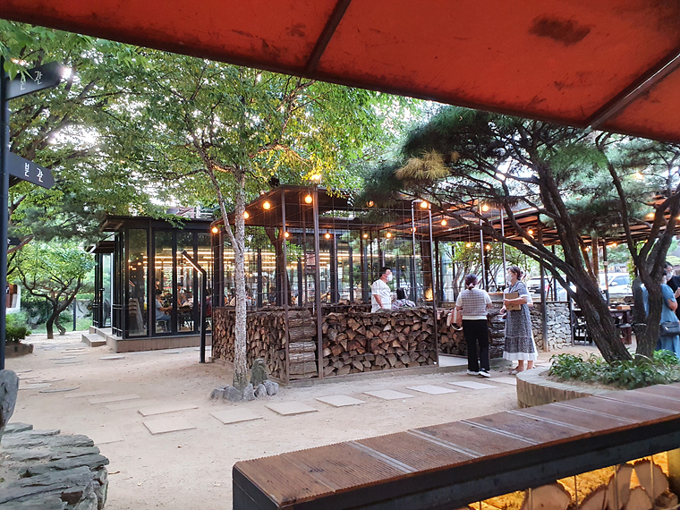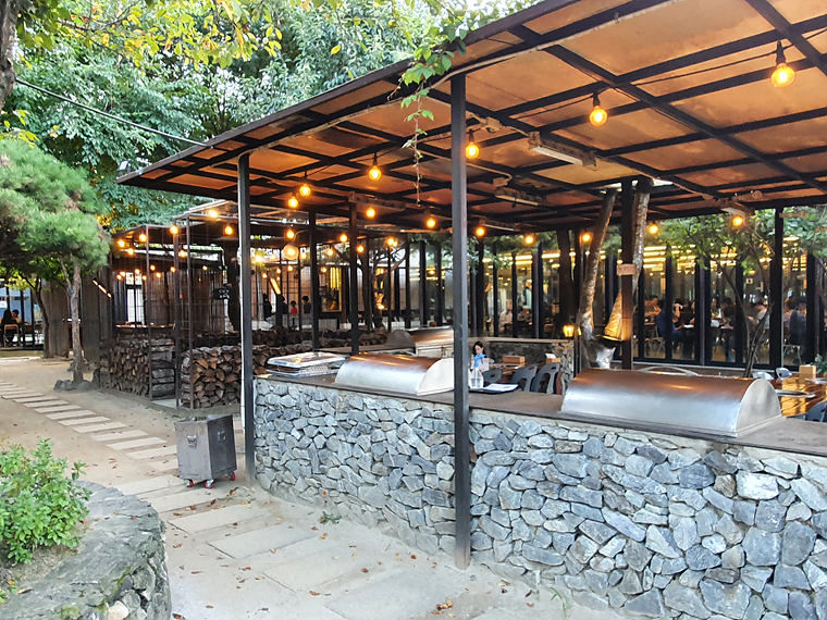 10분 정도 대기 후 입장할 수 있었지만, 더 기다리기로 했답니다. 5시 30분부터 오픈하는 야외 자리에서 식사를 하기 위해서요. 바람 솔솔 부는 가을날에 야외에서 고기 구우며 캠핑하는 분위기를 느끼고 싶었거든요. 마침 배가 아주 고프지는 않아 30분 더 기다리기로 했어요.