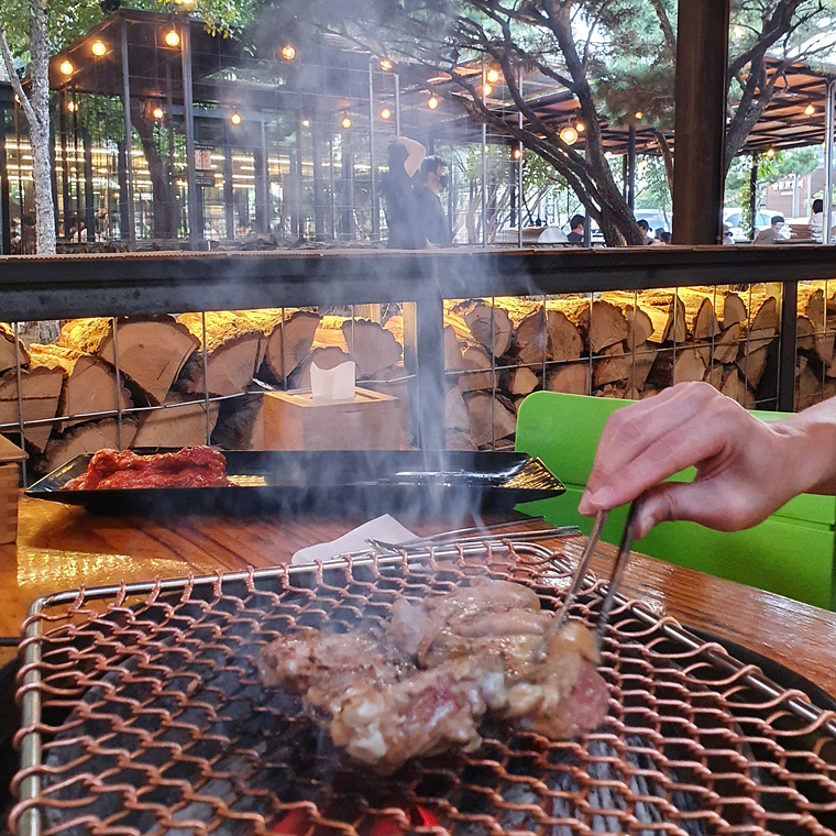 야외 자리는 환풍 시설이 없어 연기가 날 수 있다고 했는데 불편할 정도는 아니었어요. 물론 굽는 사람은 조금 더 힘들 수 있지만요. ㅎㅎ