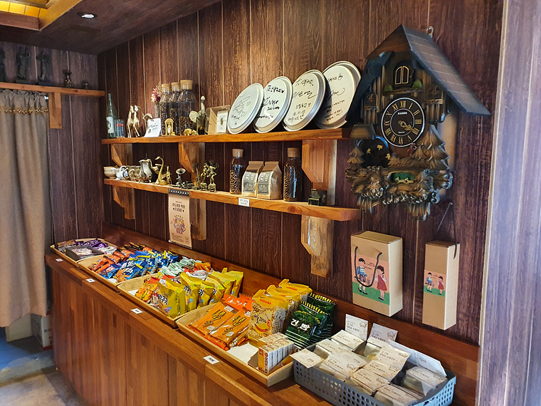 실내에도 자리가 꽤 많았어요. 한쪽에서는 추억의 과자들도 판매하고 있었어요.