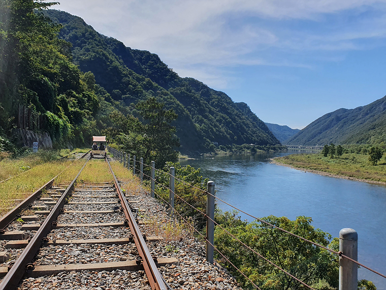 큰 기대 없이 탔는데 생각보다 속도가 빠른 구간도 있고 비눗방울 터널, 음악이 나오는 터널 등 코스가 다양하게 짜여있어서 신나게 탔습니다. 가장 좋았던 점은 역시 경치! 북한강의 아름다운 경치를 보며 시원하게 달리다 보니 속이 뻥 뚫리는 느낌이었어요. 레일바이크 탈까 말까 고민했었는데 타길 정말 잘했다! 싶었습니다.
