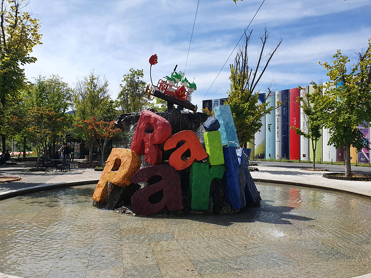 레일바이크 타는 곳 앞에도 분수, 카페 등 시설이 마련되어 있습니다. 레일바이크는 매시 정각부터 30분 단위로 운행되고 소요시간이 1시간 40분 정도예요. 물론 이 시간 동안 내내 타는 건 아니고 30-40분 정도 달린 후 중간 휴식처에 내려 대기하다가 '낭만열차'를 타고 강촌역까지 갑니다. 강촌역에서는 무료 셔틀을 타고 다시 김유정역으로 돌아올 수 있어요. 버스를 타고 돌아오는 시간까지 모두 합해서 1시간 40분 정도가 걸렸어요.