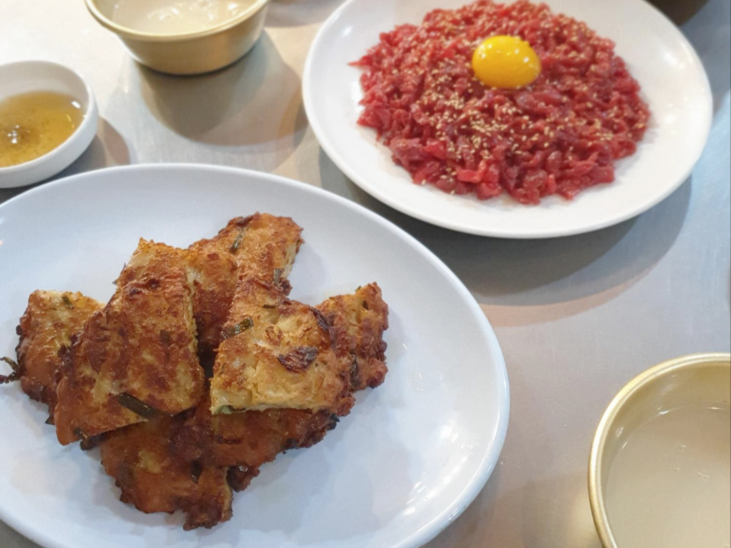 통큰누이네 육회빈태떡 에서 먹었던 것.