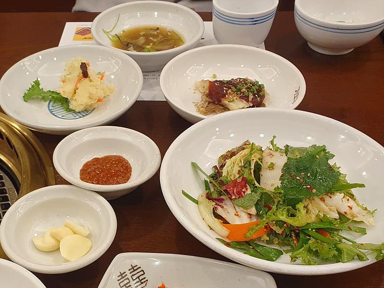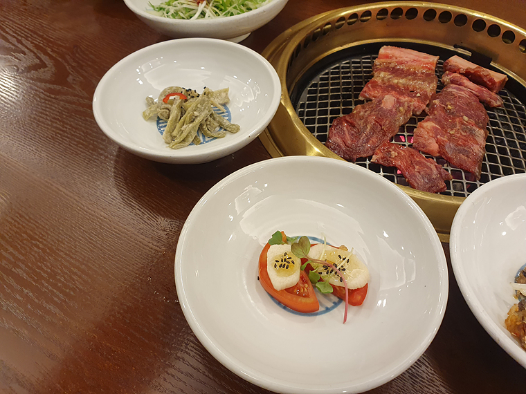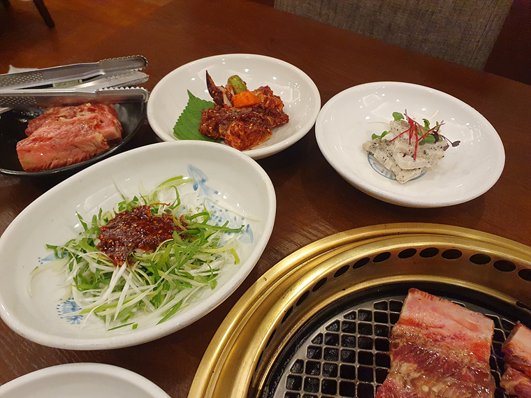 고기의 영롱한 자태에 감탄하고 있으니 금세 기본찬이 세팅됐어요.