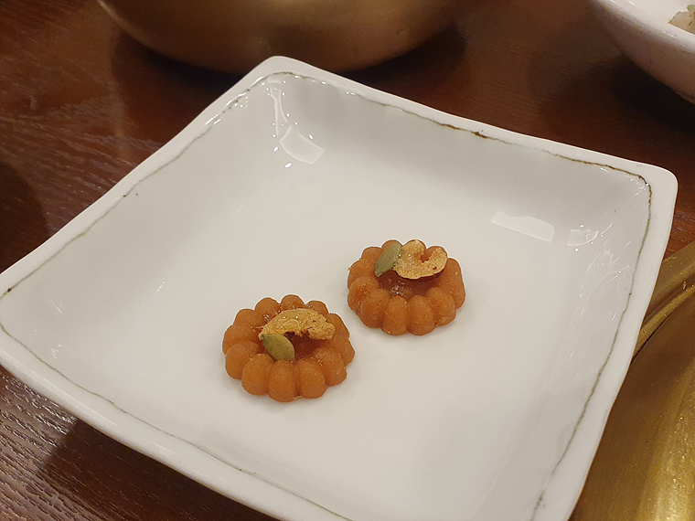 후식으로 아기자기한 약과와 수정과가 나오고 식사를 마무리했습니다.