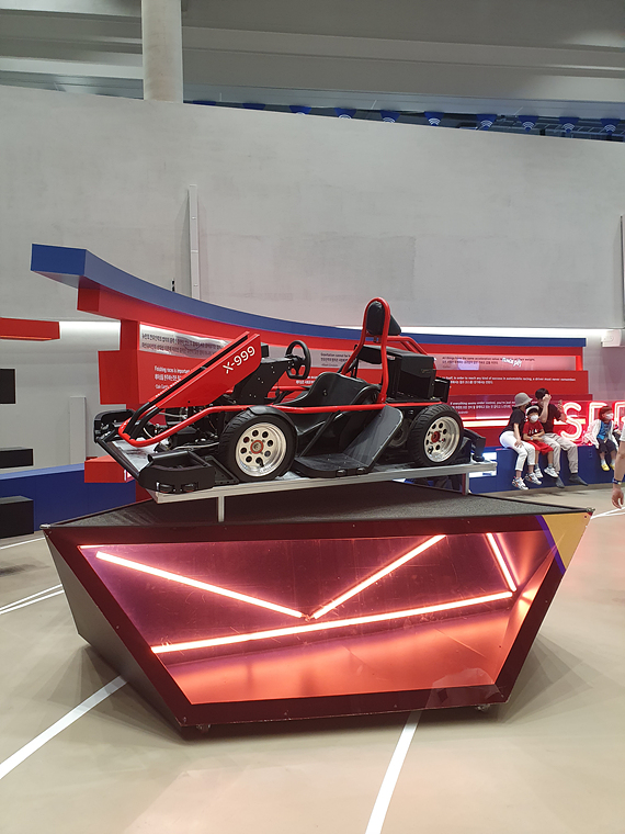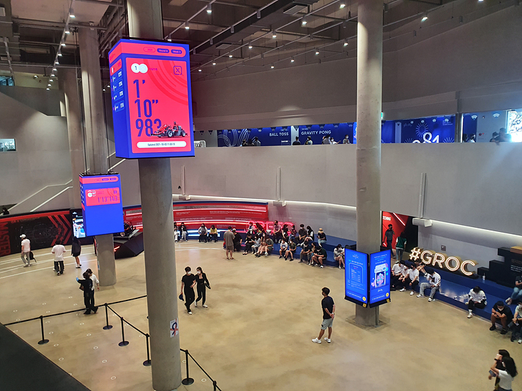 레이싱에 이용되는 카트도 전시되어 있고 곳곳에 있는 전광판에 참가자들의 기록이 나오고 있어요.