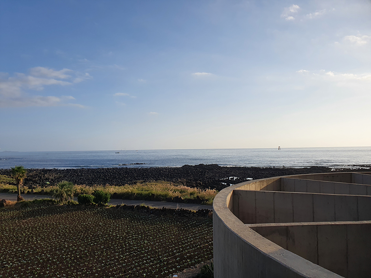 내부는 둥근 형태였는데 전체 벽면이 유리로 되어있어 제주 바다가 한눈에 들어왔어요.