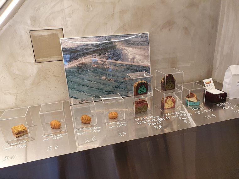 한쪽에 판매중인 디저트들이 전시되어 있어서 직접 보고 고를 수 있어요.