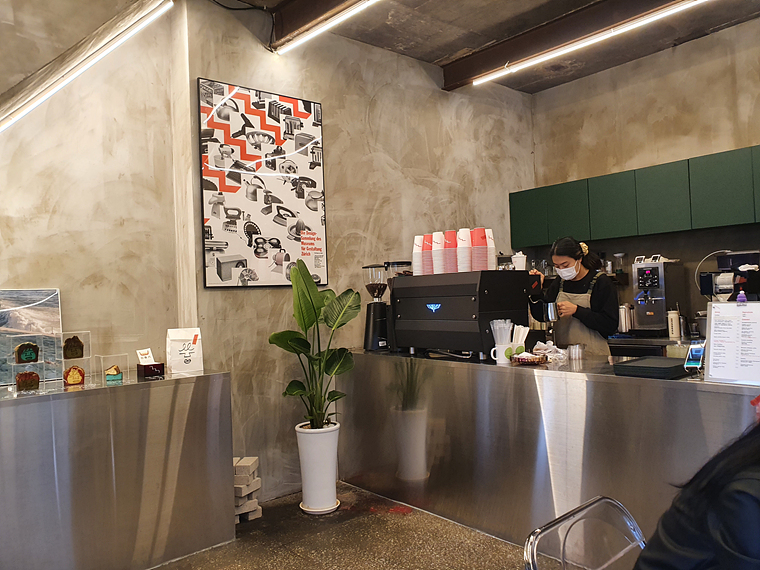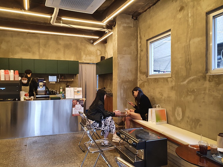 커피머신을 테이블로 사용하는 사장님의 센스가 돋보이는 자리도 보입니다.