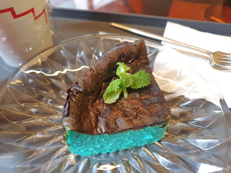 기대했던 민트초코 바스크는 바스크 치즈 케이크 답게 크리미 하면서도 진한 치즈맛이 좋았어요. 여기에 민트의 청량함이 추가된 맛입니다.