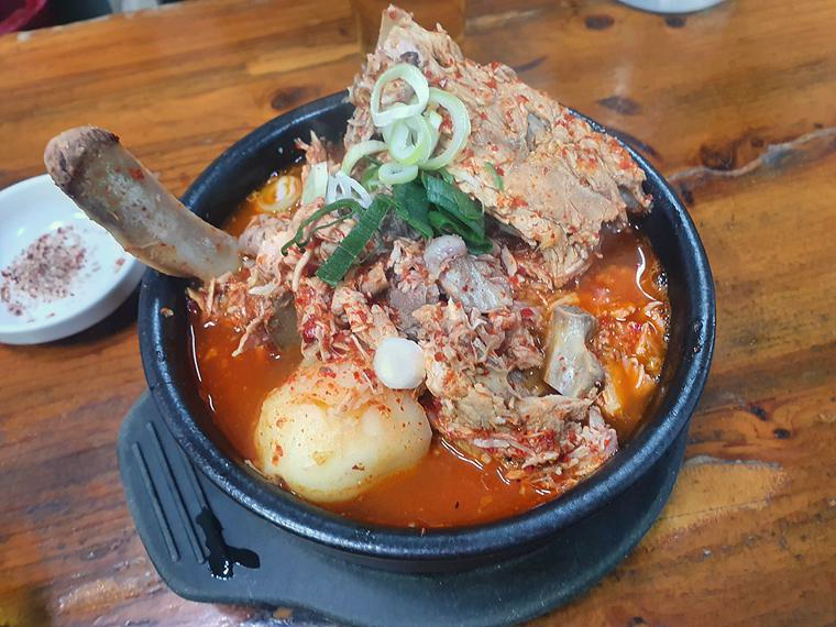 고기는 오랜 시간 푹 익힌 듯, 숟가락만 대면 뼈에서 고기가 우수수 떨어집니다. 자잘하게 으스러진 고기가 가득한 국물을 숟가락으로 떠먹는 느낌이에요.