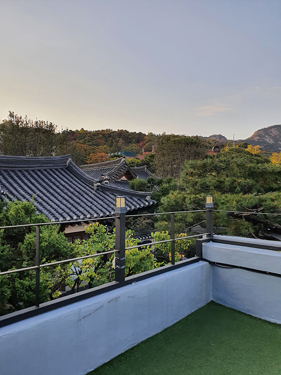 아르크의 뷰가 더욱 특별하다고 느껴지는 점은 인왕산부터 북악산까지 탁트인 산의 풍경을 조망할 수 있다는 점도 있지만 한옥 뷰를 함께 누릴 수 있다는 점이에요.