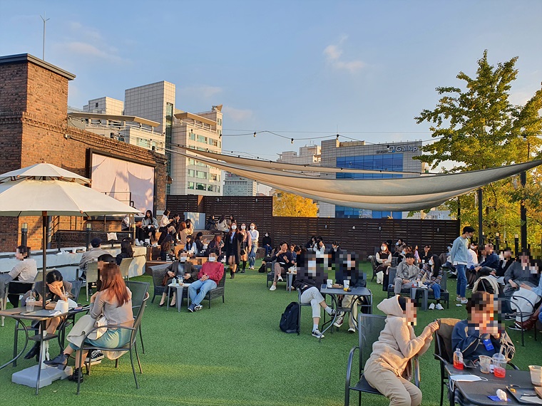 루프탑 자체는 넓지만 좌석을 여유롭게 배치해둬서 막상 자리가 넉넉한 편은 아니었어요.