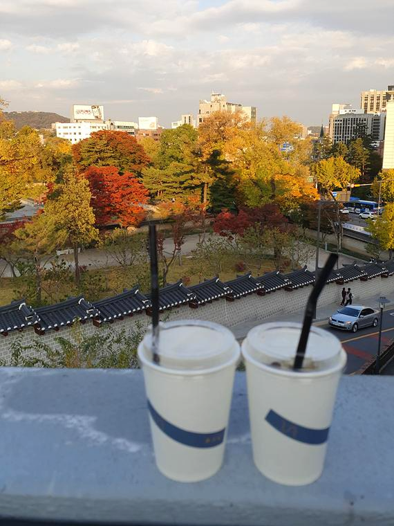 하지만 굳이 앉지 않아도 난간에 서서 뷰를 보며 커피 한 잔 하는 것만으로도 좋더라고요.