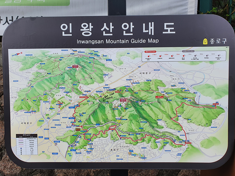 인왕산 안내도가 보이고 등산로가 바로 시작됩니다.
