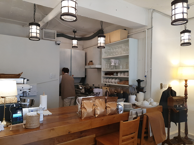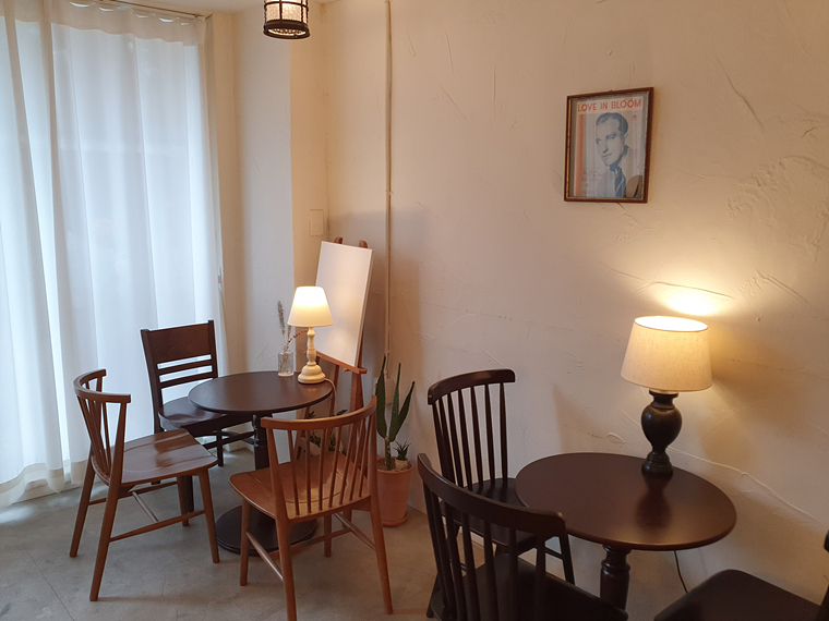 감성 가득, 따뜻한 인테리어의 내부입니다. 좌석이 4개정도 있는 작은 카페였어요.