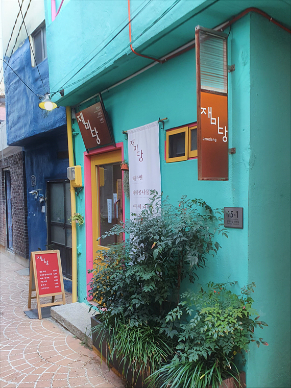 다양한 색으로 물든 미포 카페골목. 한국에서 이렇게 쨍한 색감의 골목은 처음인 것 같네요.