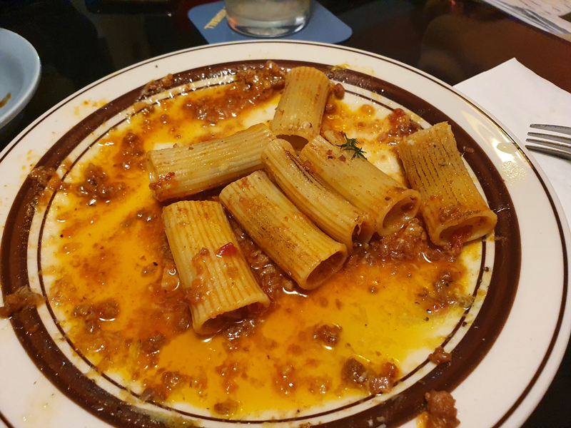 맛은 비주얼만큼 색다르지는 않았지만 치즈와 라구 소스가 듬뿍 들어있는 딱 맛있는 라구파스타 였어요. 비주얼과 양을 생각하니 가성비도 좋고 만족스러웠습니다.