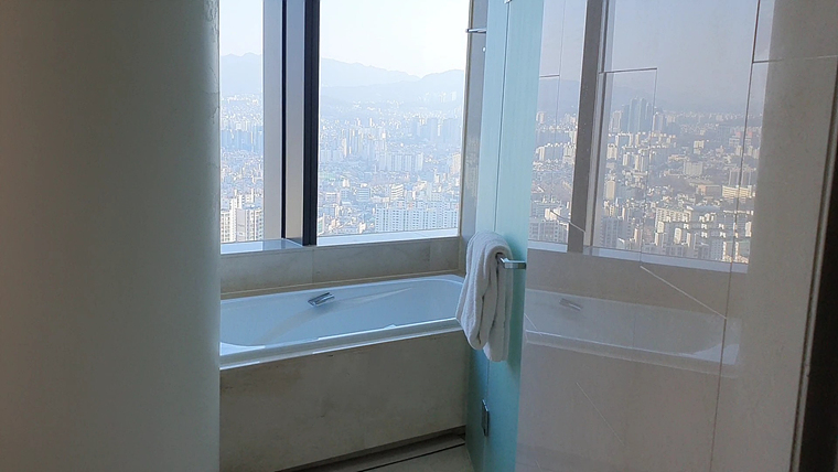 서울 호텔 중 욕실 야경은 단연코 1위일 듯.