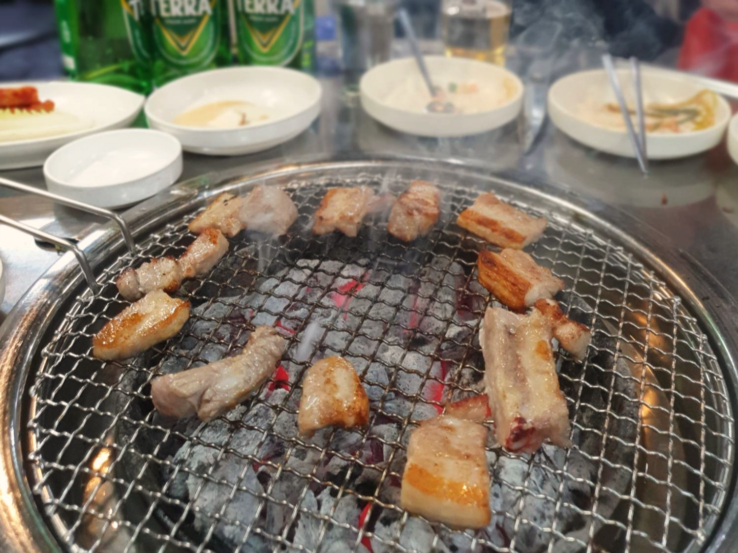 뼈삼겹으로 매우 유명한 집입니다. 고기를 따로 구워다 가져다주셔서 거의 바로 먹을 수 있습니다. 찌개와 계란찜도 기본으로 나오는 가성비 좋은 집입니다. 구디에서 돼지고기는 이 집이 가장 맛있습니다.