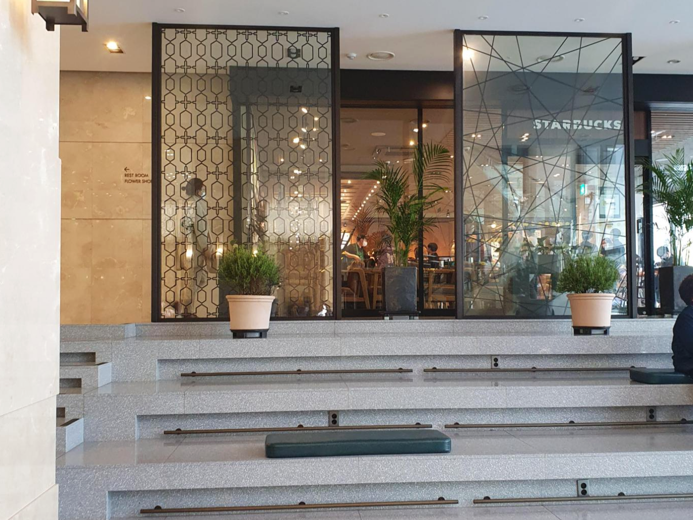 로비 오른쪽에는 앉아서 쉴 수 있는 좌석과 스타벅스가 있습니다. 조선호텔도 아닌데 1층에 스타벅스라니! 게다가 올리브영도 나란히 입점해 있습니다.