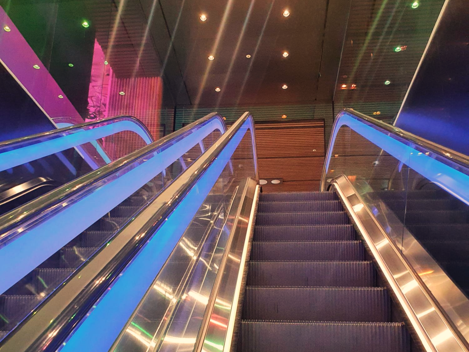 지하 1층은 에스컬레이터를 타고 내려갈 수 있습니다. 내려간다고 하고 올라가는 사진을 찍었네요 하핫. 에스컬레이터가 굉장히 화려합니다.