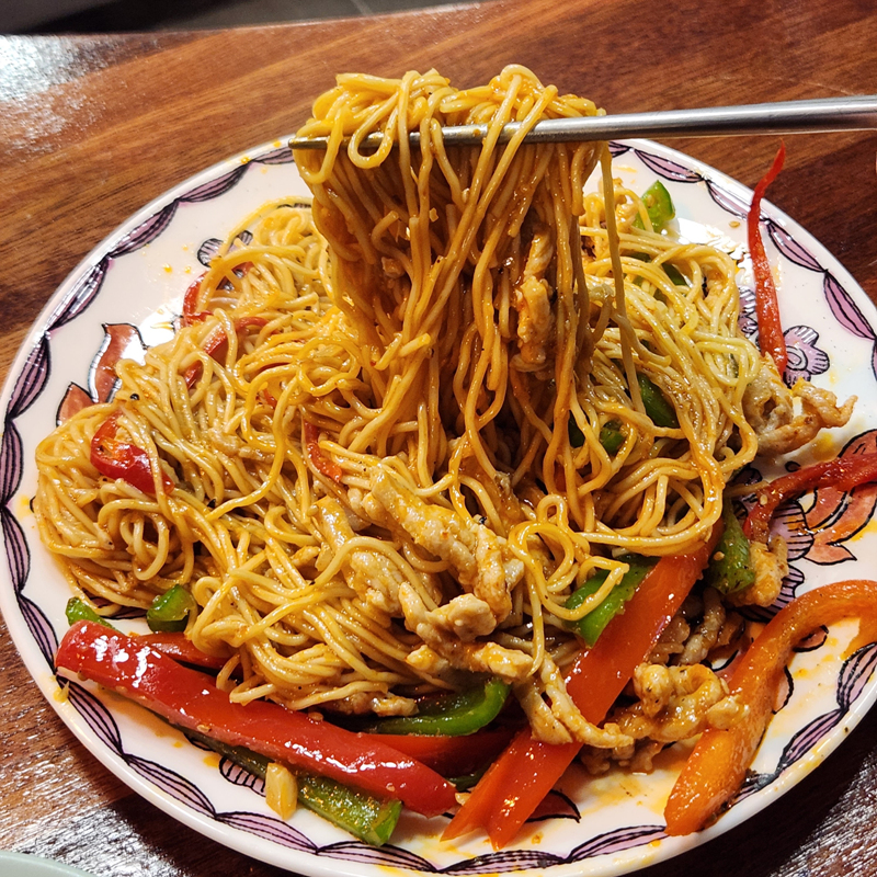다음은 고추잡채에 라멘 면을 볶아낸 요리예요. 이 메뉴 맛있습니다. 적당히 불맛도 나면서 고기, 야채 등 모든 재료에 짭짤한 간이 잘 배어서 안주로 최고였어요. 얇은 면이 매력적인 고추잡채와 야끼소바의 중간쯤 되는 맛이었어요. 이 메뉴, 또 생각나네요.