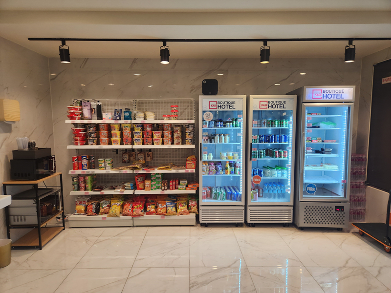 로비 한켠에는 작은 편의점도 운영하고 있습니다. 가격도 합리적인 편이라 이곳에서 이용했는데 간단한 생활용품부터 라면, 안주류, 레토르트 식품 등 꽤 다양한 제품을 팔고 있었습니다. 500ml 생수는 무료로 이용할 수 있어요.