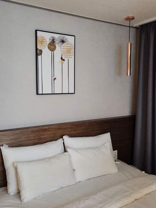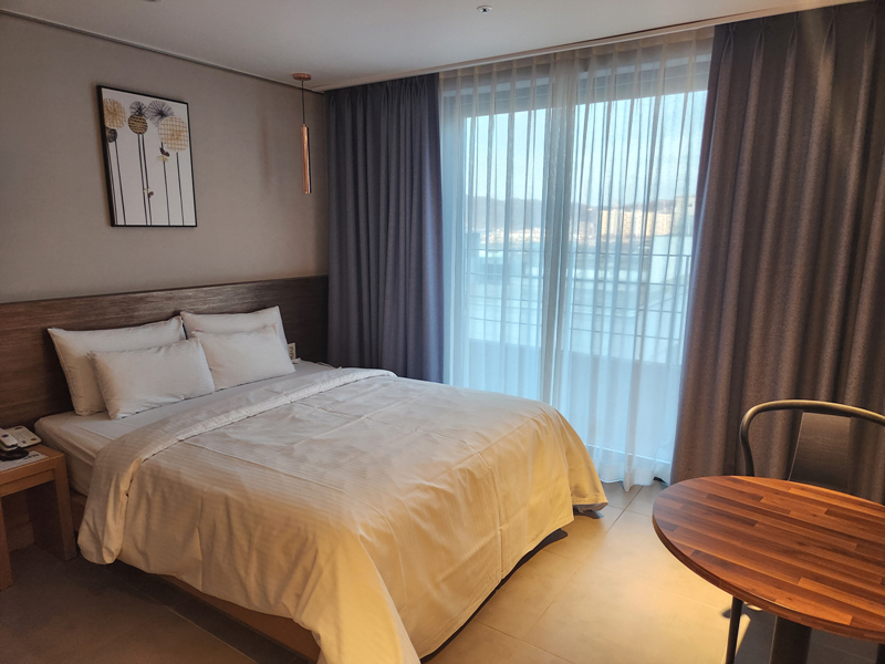 디럭스 A 더블룸 객실 모습입니다. 군더더기없이 깔끔한 인테리어에 청소 상태도 좋았어요. 신축 호텔이라 시설이 노후되지 않아 쾌적합니다. 이 정도 룸이 6만 원대라니, 가성비 면에서 굉장히 만족스러웠어요.