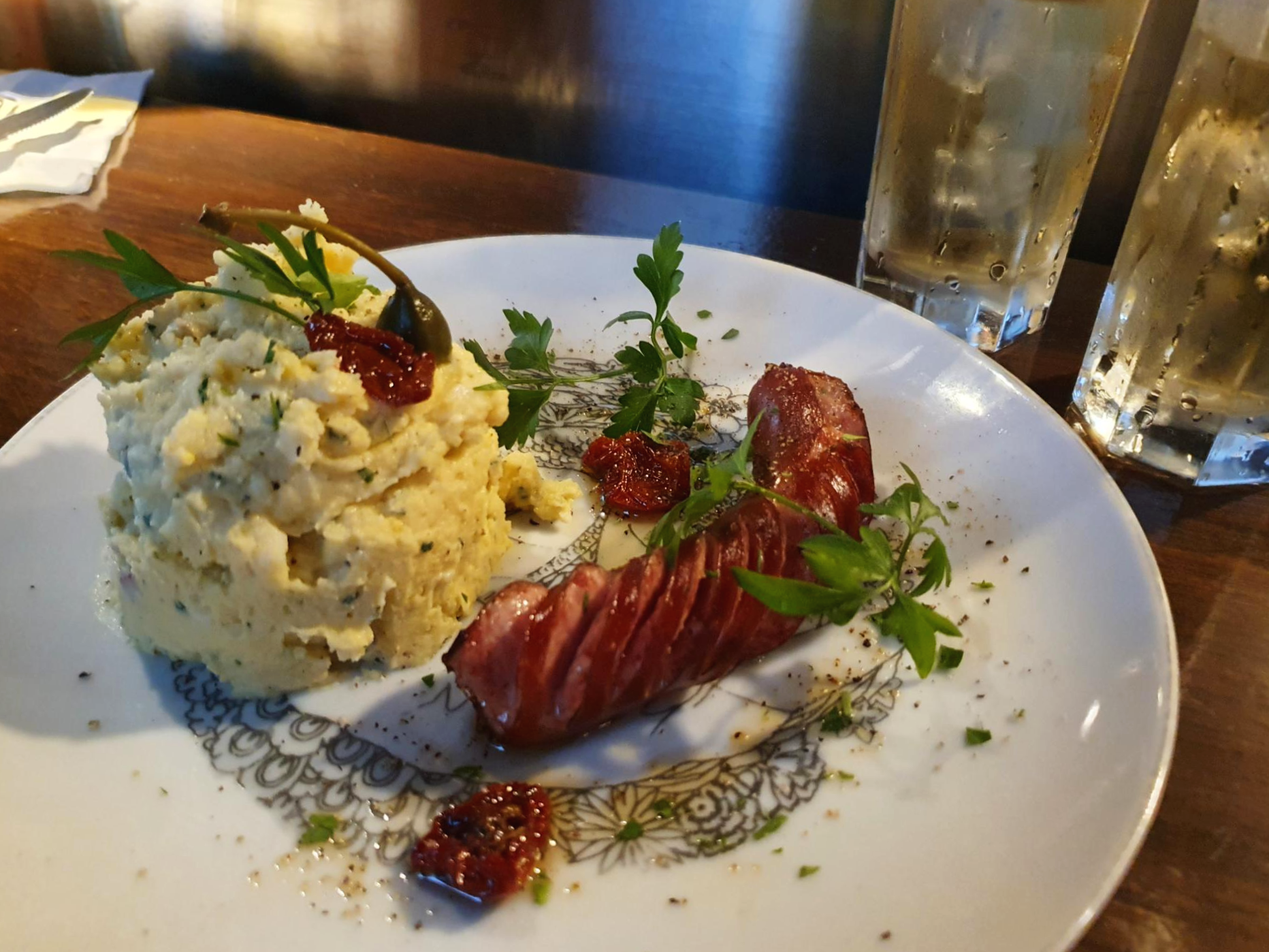 스탠딩바라는 이름처럼 서서 마시는 곳이에요. 일본에서 서서 먹는 술집에 갔을 때 굉장히 좋았던 기억이 있어 방문해봤습니다. 서서 술을 마신다고 하면 굉장히 힘들 것 같은데, 막상 가보니 훨씬 흥겹더라고요. 메뉴는 스시부터 생선구이, 파스타까지 다양합니다. 간단히 감자 샐러드와 소시지를 시켰는데 인생 소세지를 먹었네요. 플레이팅도 예술입니다. 하이볼, 맥주, 사케, 와인 주류도 다양합니다.