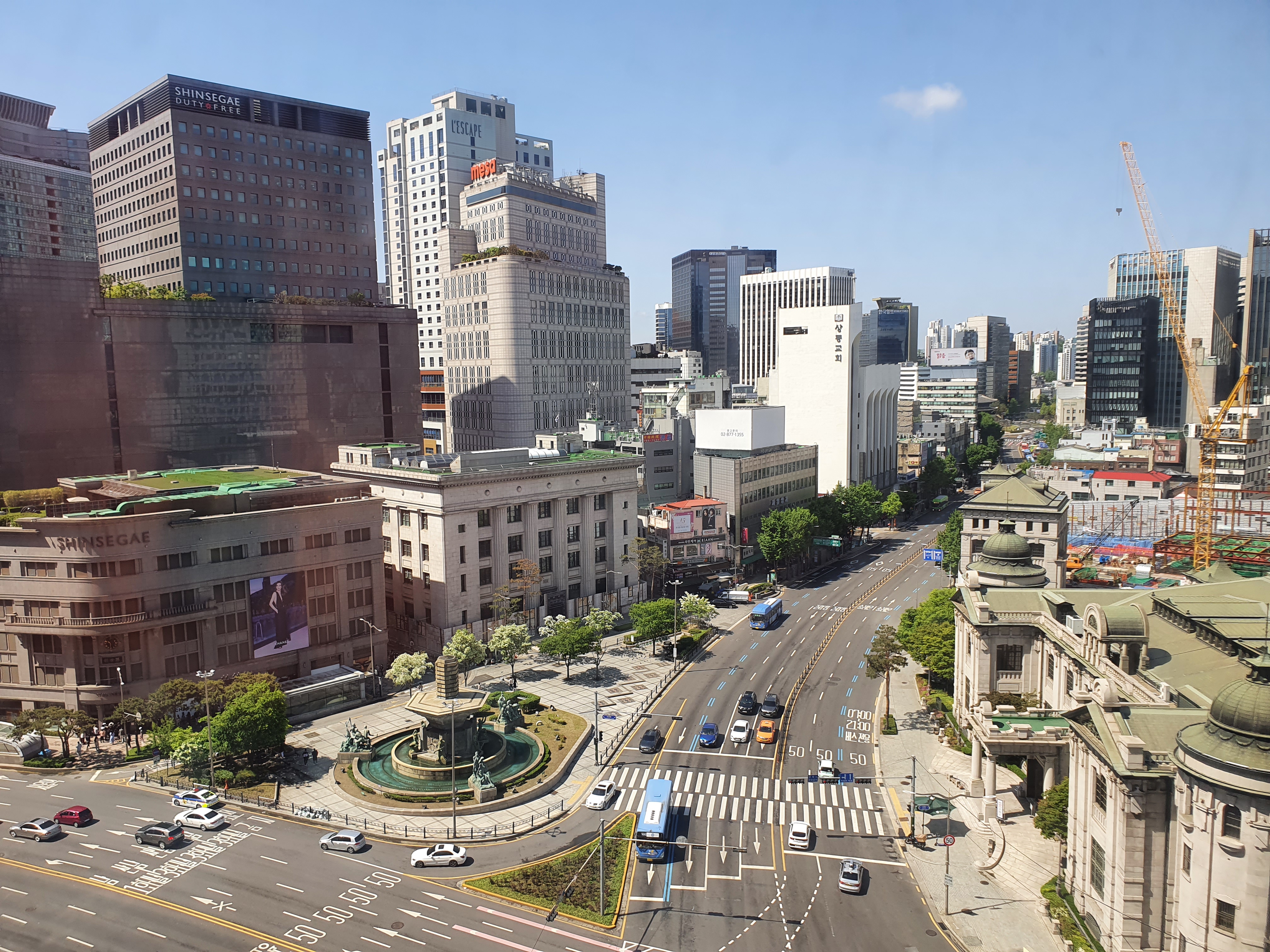 창밖으로 신세계 백화점과 한국은행도 보입니다.