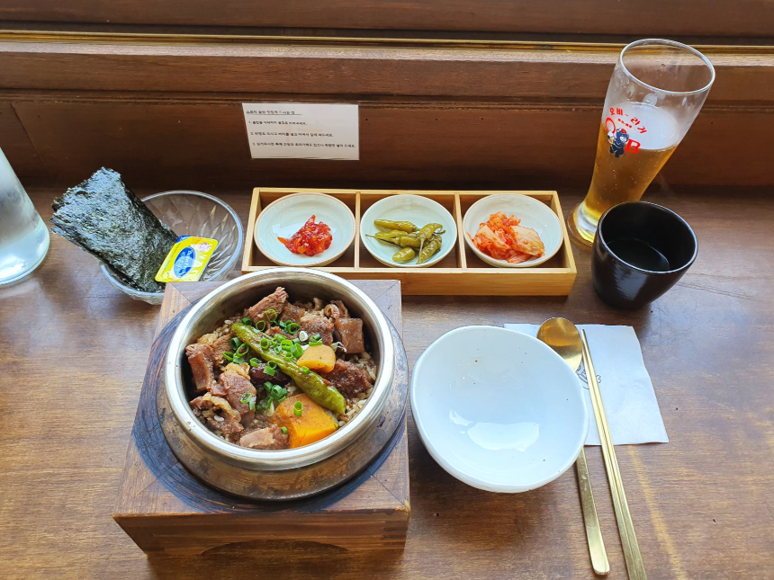 갈비솥밥(15,000원)과 맥주를 주문했습니다.