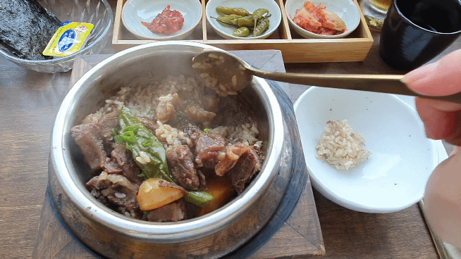 대표 메뉴: 갈비솥밥, 메밀김밥