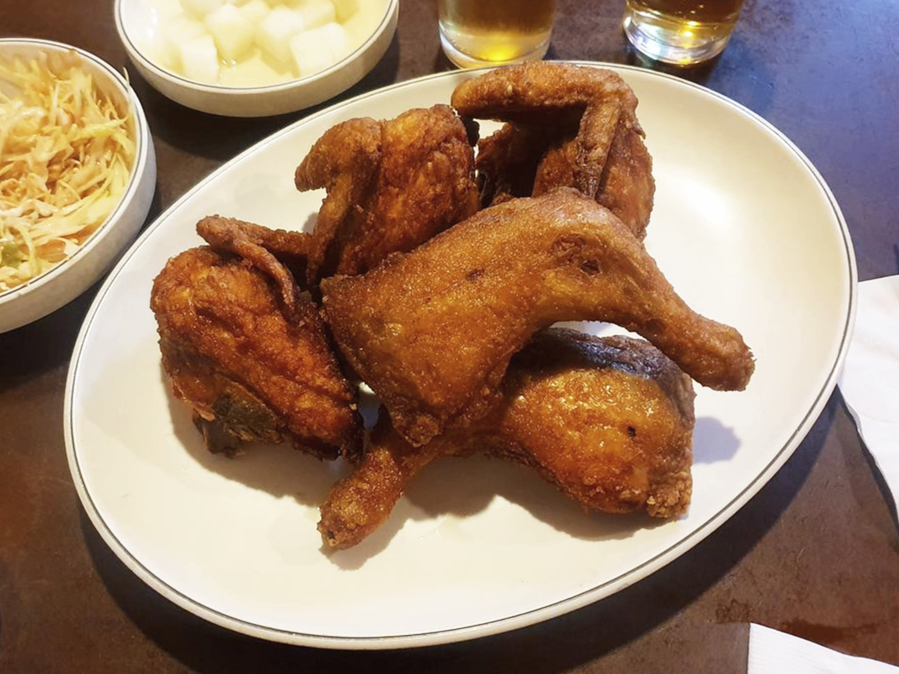 요즘 스타일의 기름진 통닭과 달리 껍질이 아주 얇고 고소해서 질리지 않고 먹을 수 있는 맛이에요.