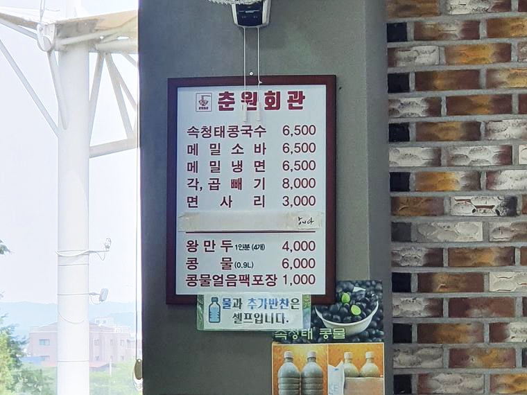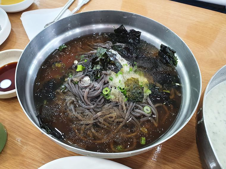 면은 두꺼운 메밀 면인데 메밀 함량이 적어서 쫄깃하소 좋았습니다. 메밀면으로 먹는 콩국수가 좀 낯설기는 했지만 맛있게 먹었어요.