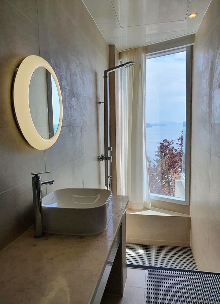 욕실에서 여수 바다를 감상할 수 있어요.