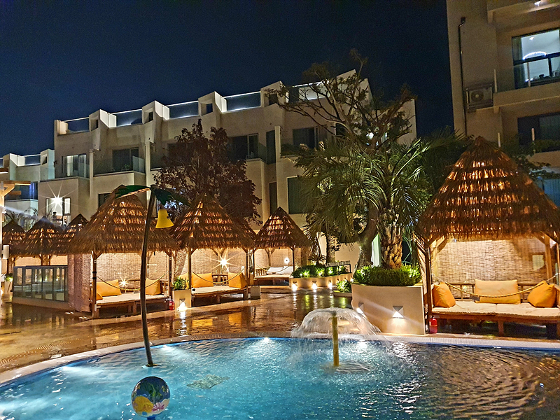 라테라스 리조트의 수영장은 밤에 더욱 화려해집니다.