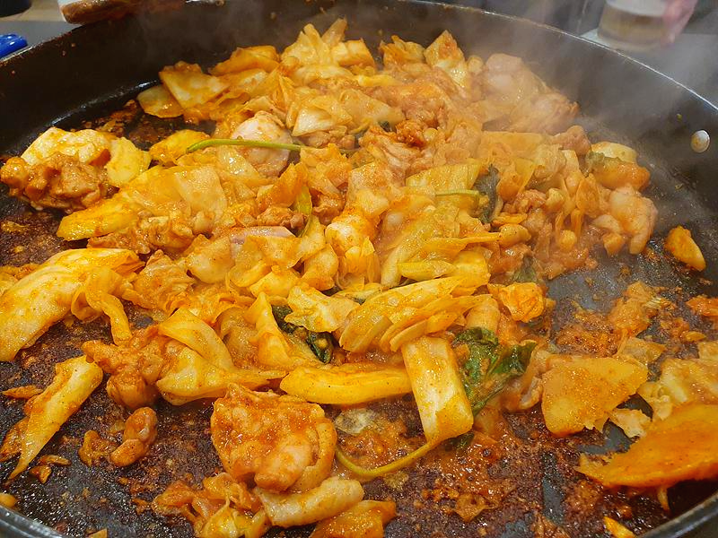 닭갈비 양념에서 윤기가 촤르르 흘렀어요.