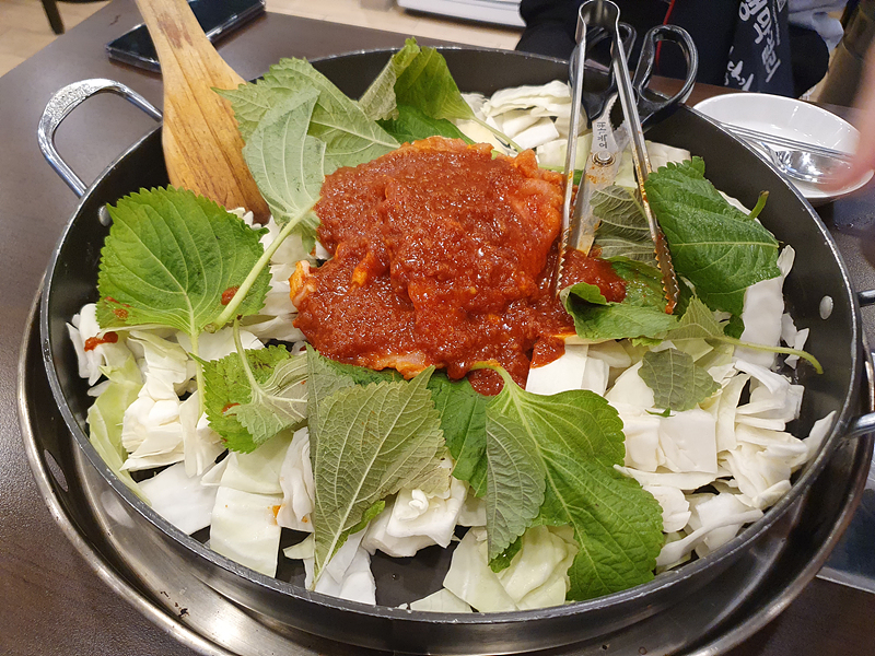 그 외에 상추와 양배추 샐러드, 백김치, 부추김치를 주십니다.