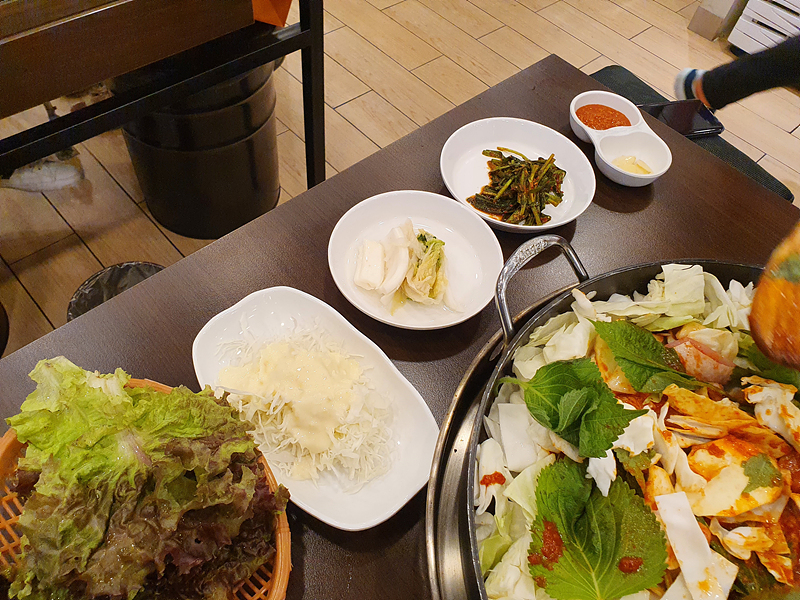 그 외에 상추와 양배추 샐러드, 백김치, 부추김치를 주십니다.