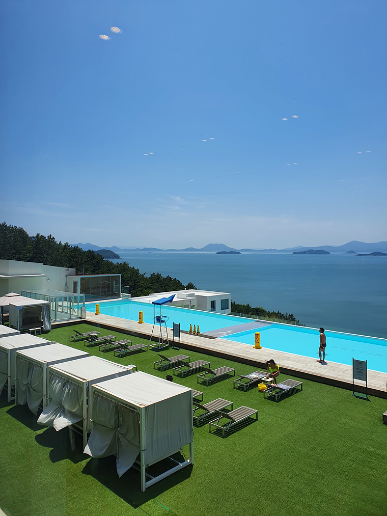 여수 라테라스 리조트는 수영장이 꼭 가보고 싶어 다녀왔습니다. 바다가 보이는 인피니티 풀과 야자수, 카바나가 어우러져 발리 같은 분위기를 내뿜는 사진을 보고 한눈에 반했거든요. 라테라
