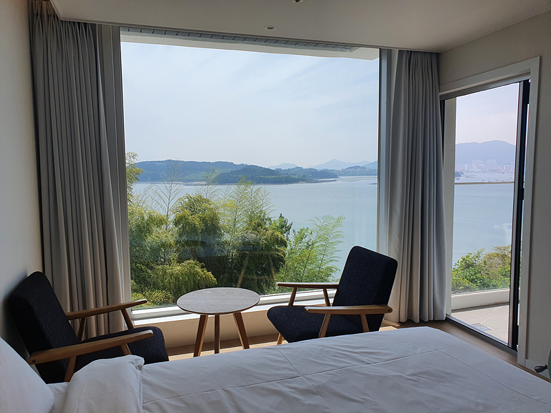 여수 디아크 리조트, 리조트 자체가 쾌적하고 모든 시설이 깨끗했습니다. 라테라스 리조트가 에너지 넘치는 동남아 휴양지 느낌이라면, 이곳은 모던하고 쾌적한 시설에서 여유롭게 힐링할 수 있는 휴가지입니다. 대나무 숲 가까이에 있는 객실을 선택해서 숲과 바다를 동시에 누릴 수 있는 이곳만의 특별한 뷰를 즐겨 보는 것도 추천합니다.