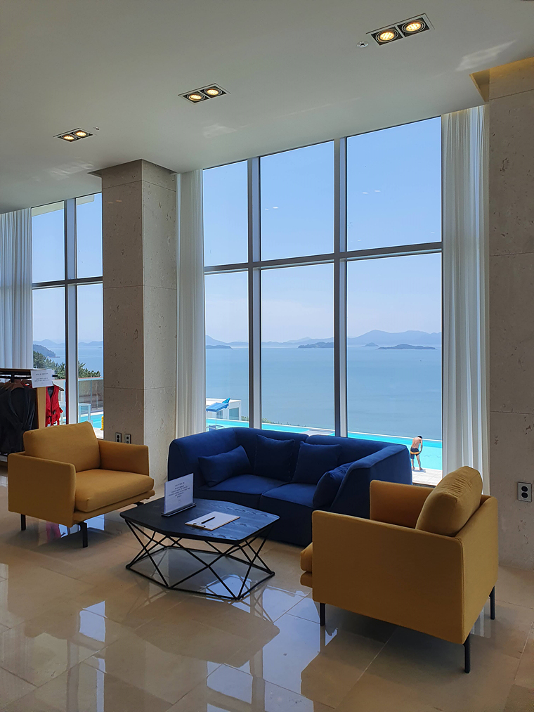 여수 디아크 리조트 로비는 꽤 넓고 쾌적했어요.