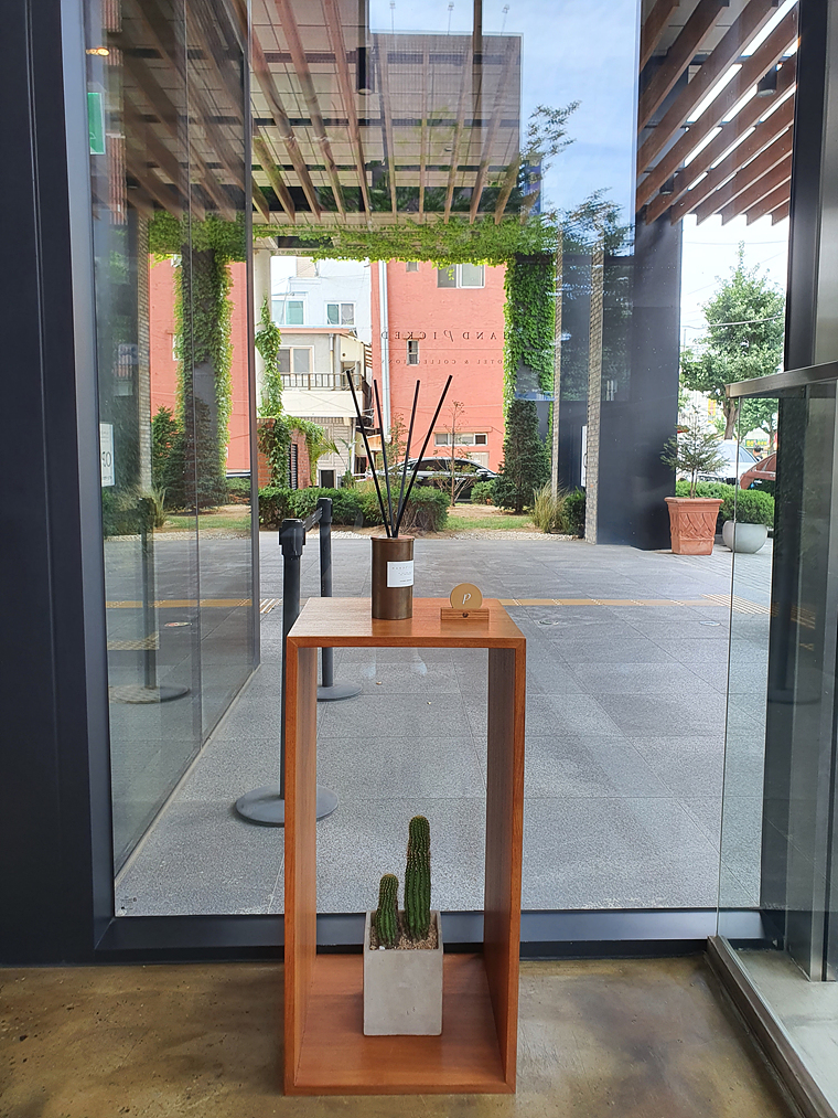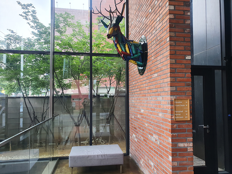 호텔에 들어서니 독특한 사슴 오브제가 눈에 들어옵니다. 그와 동시에 핸드픽트만의 향기가 느껴지고, 라운지 바에서 나올법한 힙한 음악이 흘러나옵니다. 입구부터 범상치 않네요.