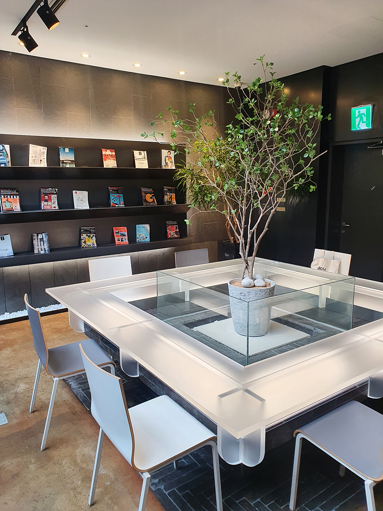 벽면은 트렌디한 브랜드 잡지로 채워져 있고요, 가구 하나하나 멋스러웠습니다.