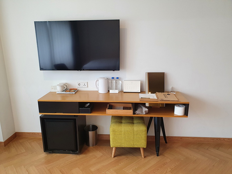 핸드픽트 호텔 객실은 가구가 많지 않았어요.
